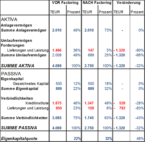 - Gewerbesteuerersparnis, wenn die Mittelzuflüsse aus Factoring zur Reduzierung der langfristigen Bankverbindlichkeiten verwendet werden.