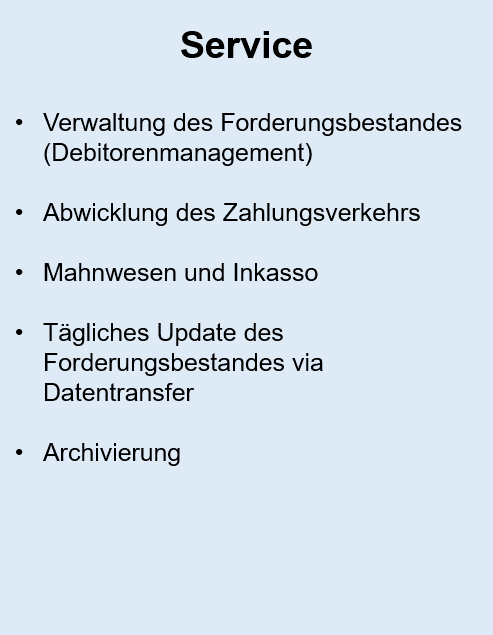 Die Definition von Factoring: Factoring ist der Ankauf von Forderungen aus Warenlieferungen oder Dienstleistungen mit: